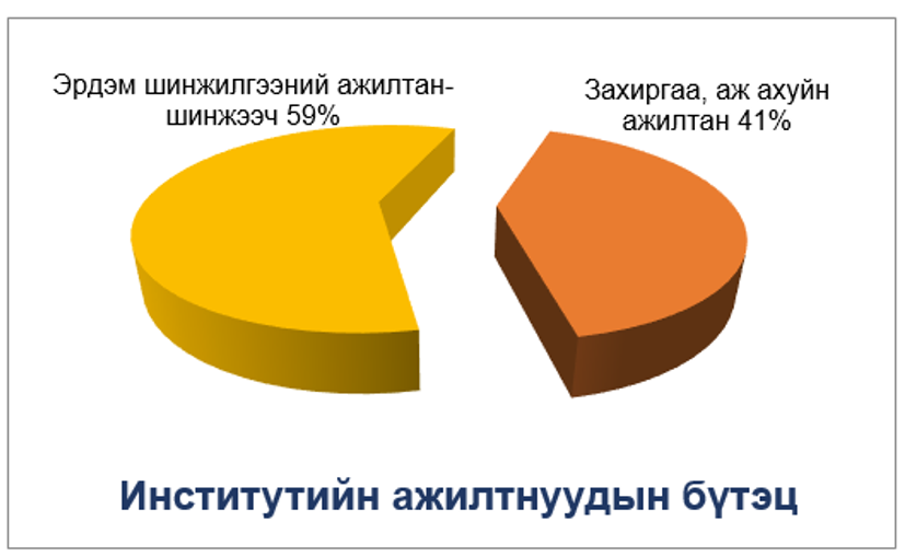 Институтийн захиргаа, эрдмийн зөвлөл, ШУТ-ийн төслүүд болон шинжилгээ, судалгааны бусад ажлуудын үр дүнг үйлдвэрлэл, үйл ажиллагаандаа нэвтрүүлэхэд онцгой анхаарч, гүйцэтгэсэн ажлууд тайлан бичих төдийгөөр дуусгавар болдог хэвшмэл зуршлыг өөрчлөхийн тулд цоо шинэ менежментээр ажиллах бодлого барьж ШУТ-ийн төсөл, эрдэм шинжилгээний ажлын чиглэл, сэдэв сонгох, бизнес төсөл боловсруулахдаа хүнс, хөдөө аж ахуйн салбарын тулгамдсан асуудлуудыг шийдвэрлэхийг чухалчилдаг.